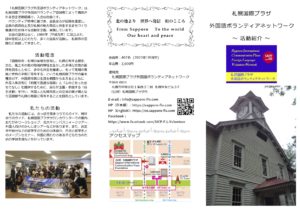 外国語ボランティアネットワークでは新型コロナウィルス感染拡大防止のため、ボランティア活動を休止しています。世界中の皆さまとまたお会いできる日が早く来るように願っています。身体に気をつけて、笑顔を忘れずに、過ごしましょう!